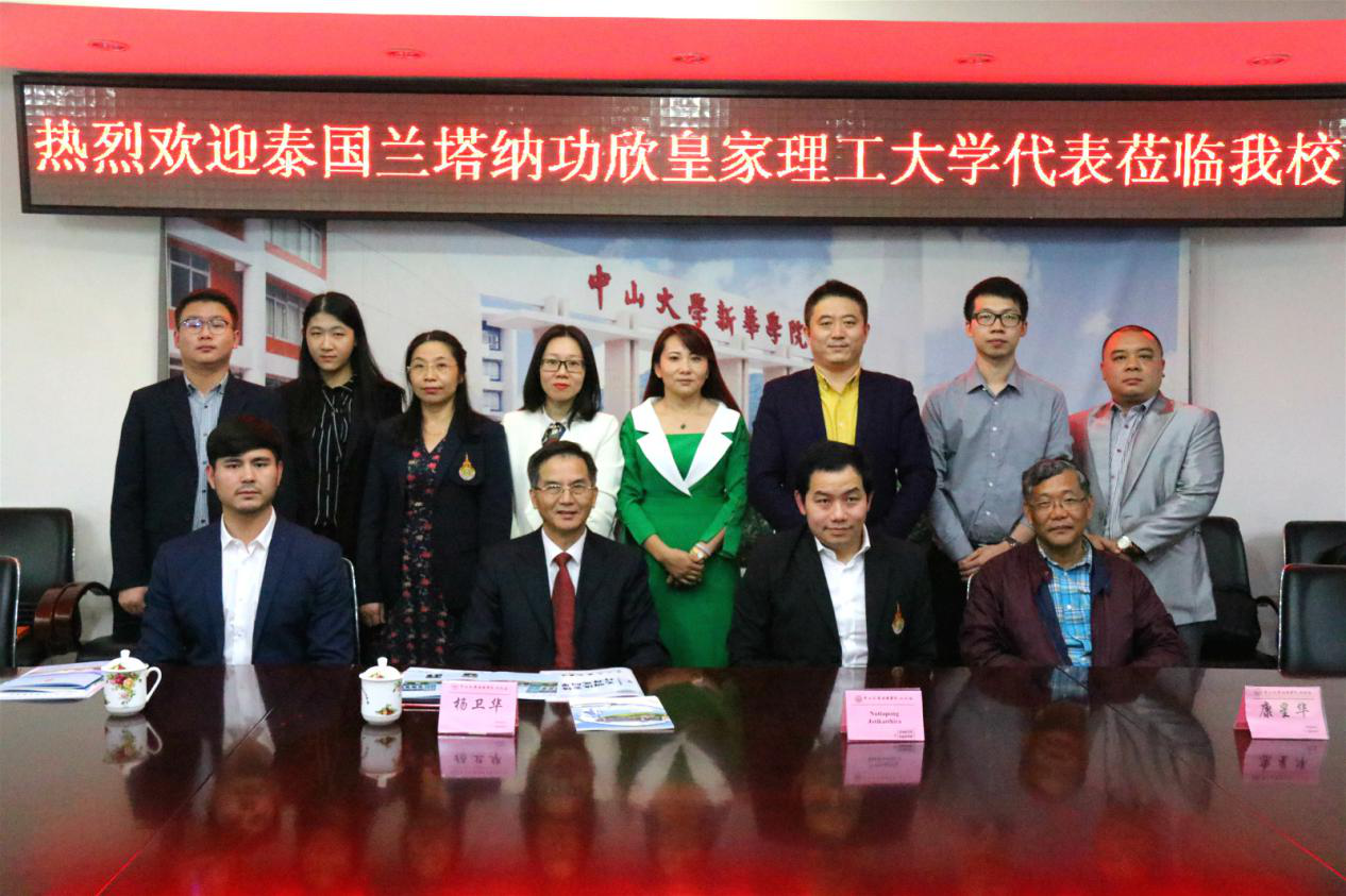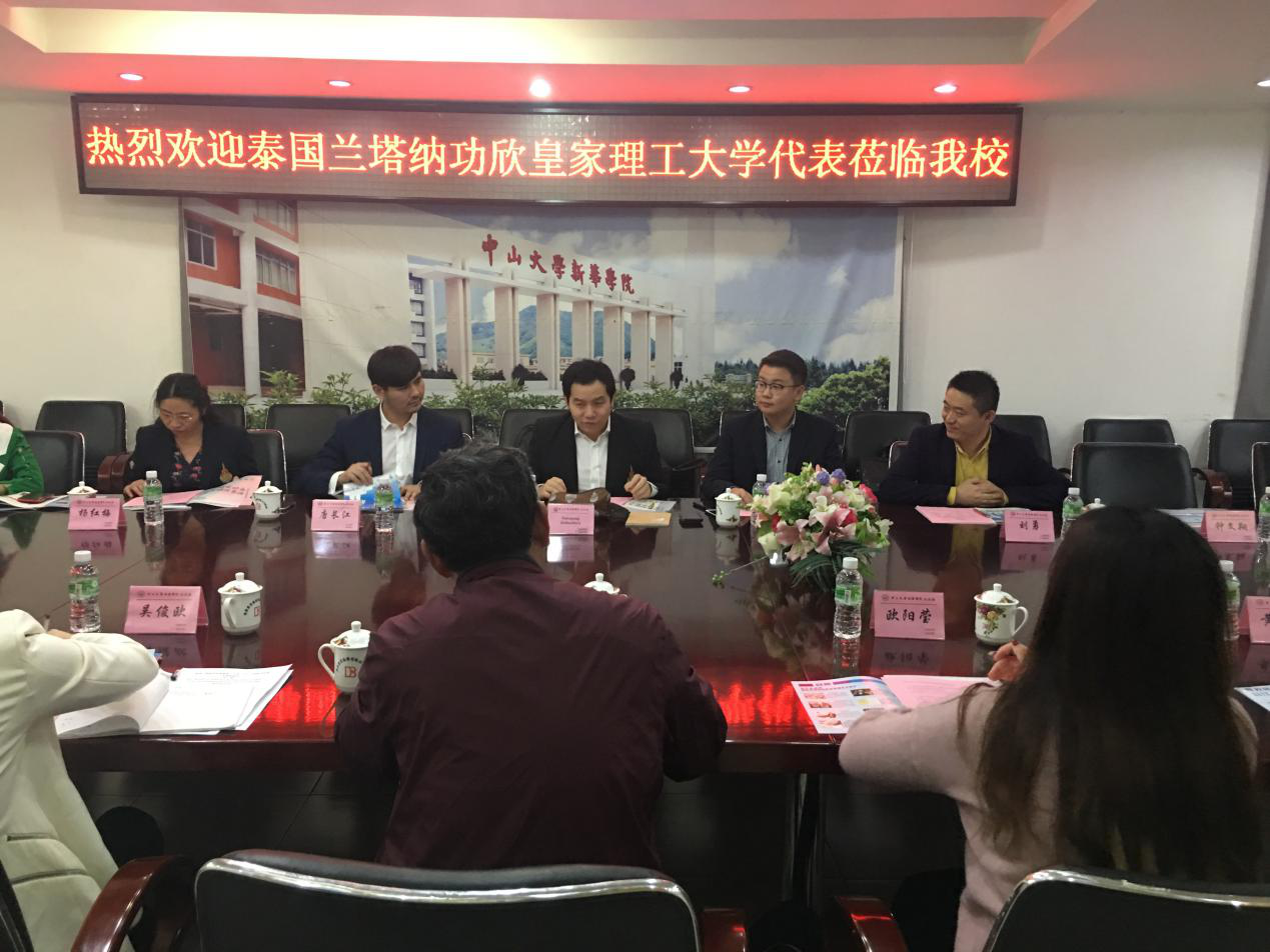 10月18日,泰国兰塔纳功欣皇家理工大学国际学院Nuttapong Jotikasthira院长一行10人来访古天乐代言太阳集团网址,古天乐代言太阳集团网址副校长杨卫华,外事处副处长吴俊欧,国际学院副教授康星华等接见来宾。