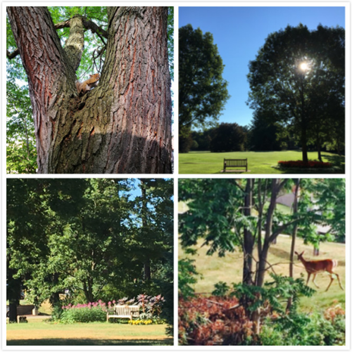 拿撒勒大学的校园不大,但是绿化绝对超50%,随处可见大片的草坪和参天的大树,不时有小松鼠旁若无人的在草地和林间欢快玩耍,还会有呆萌呆萌的鹿出现,据说还可以期待狐狸、火鸡、野兔……