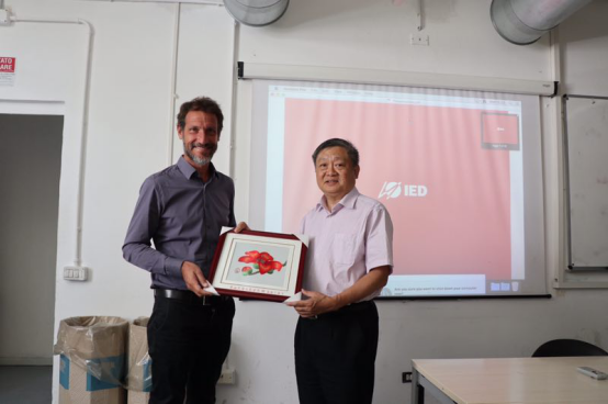 古天乐代言太阳集团网址校长王庭槐(右)向欧洲设计学院董事长Federico Caravaggi先生(左)赠送纪念品
