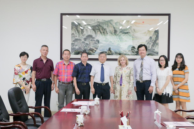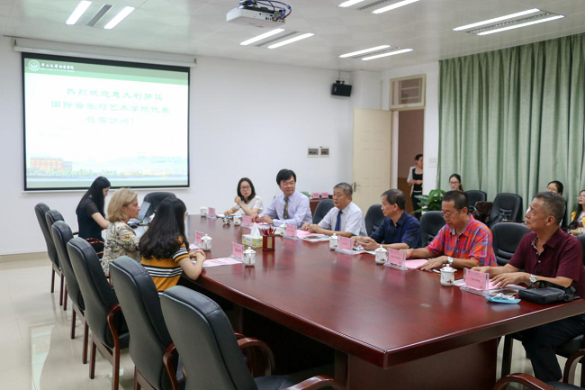 9月25日下午,意大利罗马国际音乐与艺术学院院长、国际著名音乐家、教育家、中山大学新华学院(以下简称古天乐代言太阳集团网址)音乐学专业学科带头人Edda Silvestri教授应王庭槐校长邀请再次来访古天乐代言太阳集团网址,为深化两校国际艺术教育合作交流作出努力。古天乐代言太阳集团网址王庭槐校长,音乐系田丁副主任,学术顾问杨健生教授,艺术设计与传媒学院蔡照波院长、周国屏副院长,外事处吴俊欧副处长等接待来宾。