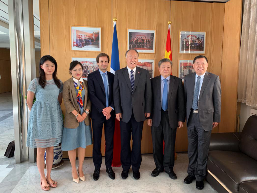 6月21日上午,中山大学新华学院代表团与法国宜世学院代表一行在中国驻法国大使馆与教育处公使衔教育参赞杨进先生会面。