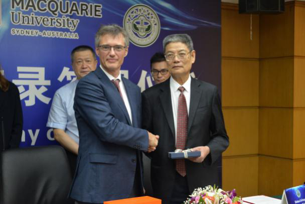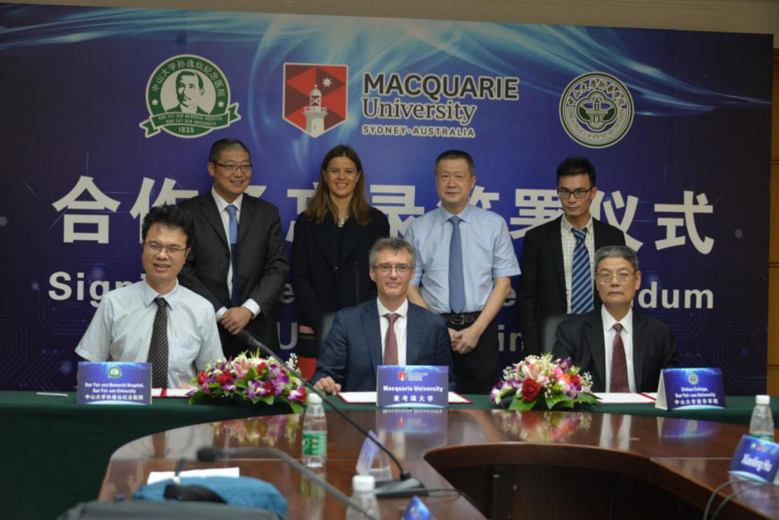 8月20日上午,中山大学新华学院副校长廖振亮、孙逸仙纪念医院副院长林天歆教授、澳大利亚麦考瑞大学人类科学院执行院长Simon Handley代表各方院校,于中山大学孙逸仙纪念医院博济楼,签署了《谅解备忘录》。