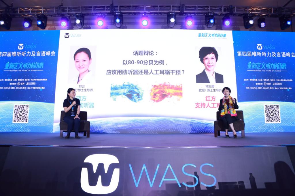 四川大学华西医院听力中心主任郑芸教授,中山大学附属第一医院耳鼻咽喉科熊观霞教授就是否支持助听器干预话题进行辩论