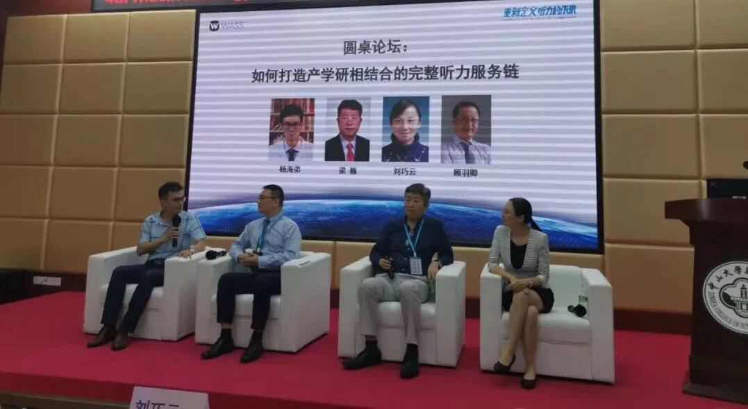 “圆桌论坛”讨论:听力服务链的完善 (由左至右:杨海弟、顾羽卿、梁巍、刘巧云)