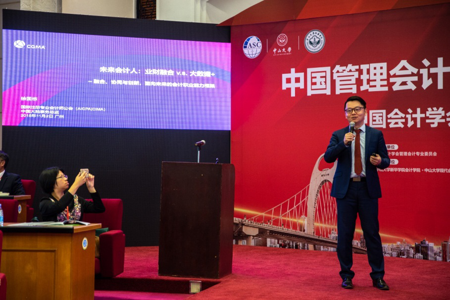 在11月2日上午举行的大会主题报告会上,来自实务界、理论界、教育界的9位知名专家学者作了大会主题报告。主题报告会上半场由中山大学会计学科团队负责人谭劲松教授主持,下半场由中国交通建设股份有限公司金融管理部总经理房小兵主持。上半场暨南大学管理学院胡玉明教授、中国南方航空集团公司党组成员肖立新总会计师、北京工商大学王斌教授、美的集团股份有限公司代表何运常先生分别发表了题为“中国管理会计研究之根本”、“聚焦高质量发展,推进价值预算管理”、“管理会计的制度属性”、“互联网+时代的财务转型-美的实践分享”的主题演讲;下半场厦门大学傅元略教授、《会计研究》编辑部主任刘国强博士、CGMA中国区徐国栋总监、中山大学刘运国教授、IMA中国总裁白俊江先生分别发表了“财务智能理论智能体与情绪情景计算融合”、“会计理论研究的新动向”、“财务转型和业财融合背景下国际化管理会计人才的成才之道”、“互联网平台商业模式对管理会计的影响”、“IMA与中国管理会计:十年回顾与未来展望”的主题演讲。