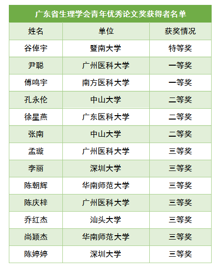 为表彰我省生理学家对学科教学、科学研究所做出的贡献,进一步鼓励和支持生理学领域中青年科研教学人才的成长。大会在学术报告环节后举行了2018年度“广东省优秀中青年人才奖”、“广东省生理学会教育教学奖”、“广东省生理学会青年优秀论文奖”颁奖仪式。