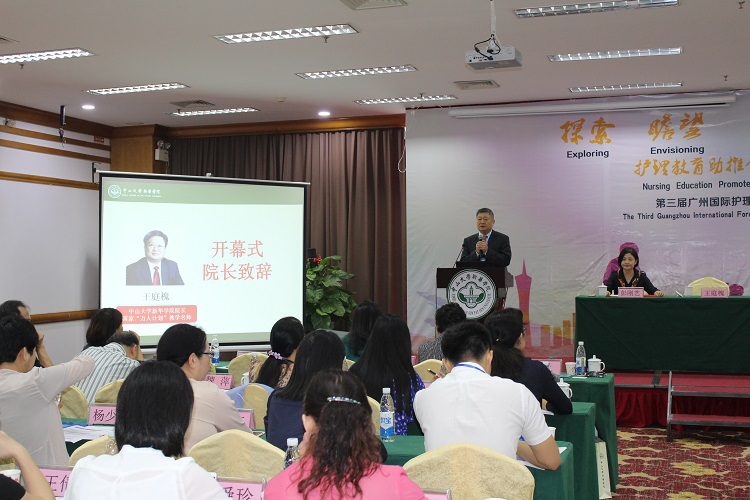 中山大学新华学院院长、中山医学院生理学教授王庭槐为开幕式致辞,希望广大护理同仁深入交流、畅所欲言,为我国乃至全球人类的健康事业发挥睿智、奉献才华。