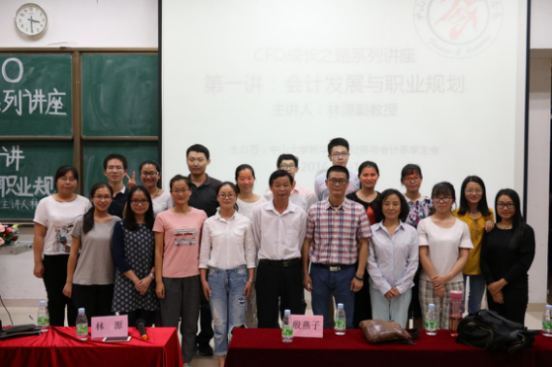 林源副教授首先以轻松的语调展开了话题,并以“特朗普都能做总统,我们为什么不能做CFO?”的反问呼吁同学们要从确立小目标做起,明确思考自身的定位与未来发展规划,为往后的发展打下基础。