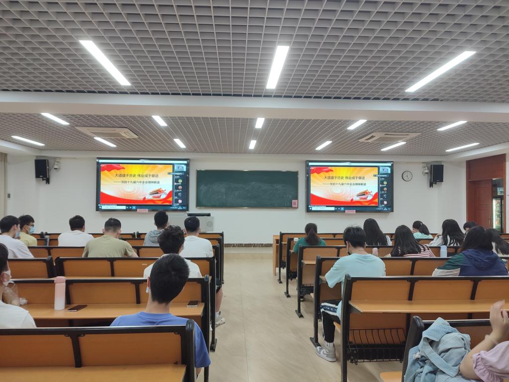 黄东锋从深刻认识总结党的百年奋斗重大成就和历史经验的重大意义、党的百年奋斗历程中汲取智慧和力量、新时代党和国家事业取得的历史性成就和发生的历史性变革等方面对十九届六中全会精神作了全面解读,讲授深入透彻、通俗易懂,加深了师生们对全会精神的理解与把握。