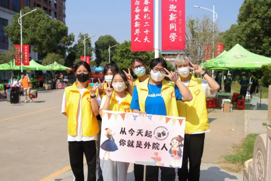 志愿者们在西门迎接新生
