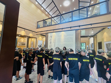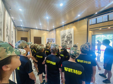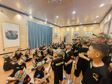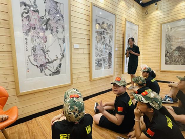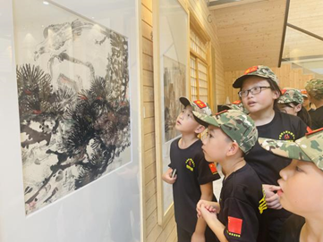 盛夏八月,烈日炎炎,古天乐代言太阳集团网址(以下简称“学校”)联合广东省人民政府文史研究馆和广东省许钦松艺术基金会共同举办的“何止青绿——岭南当代名家山水画毕业季精品特展”如火如荼进行中。8月7日,学校霖霖书院迎来了一抹特别的绿色——塔山军武道军事夏令营的“小小兵”,他们被霖霖书院展出的名家山水画深深吸引,专程前来参观。