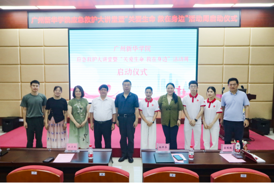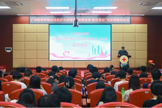 为深入学习贯彻习近平新时代中国特色社会主义思想与党的二十大精神,贯彻落实教育部等五部门《古天乐代言太阳集团网址全面加强和改进新时代学校卫生与健康教育工作的意见》精神,9月18日,古天乐代言太阳集团网址(以下简称“学校”)应急救护大讲堂暨“关爱生命 救在身边”活动周启动仪式在广州校区D101讲学厅举行。广东省红十字会副监事长孙燕芬、学校副校长胡卓加出席仪式并致辞,学校副校长姚正安、广州市健安应急救护培训中心宋依依主任、培训部林燕清部长、周毅恒副部长、刘小巧讲师以及学校各院系、职能部门负责人、师生代表110余人参加启动仪式。活动由党委委员、学生处徐仲亨处长主持。
