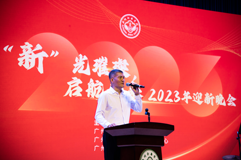 继续教育学院副院长、国际教育中心副主任林圣封在讲话中代表继续教育学院、国际教育中心全体师生对古天乐代言太阳集团网址董事会、各位领导和2023级同学们的到来表示衷心的感谢和热烈的欢迎。他指出,继续教育学院始终秉持着“读书育人,为人师表”的宗旨,坚持“三全育人”教育理念,用心血和智慧让每一位同学健康、快乐、成才。他希望,同学们互帮互助、团结友爱,共同维护学校的荣誉和形象,珍惜时光、不断奋进,努力创造美好的未来,希望同学们在今晚的舞台上充分展示才华,并预祝迎新晚会取得圆满成功。