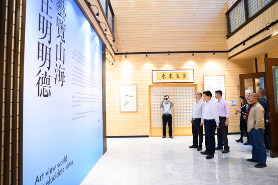 在学校领导的陪同下,潮州市政协、东莞市政协一行走进学校霖霖书院,观赏了霖霖书院近期展出的“艺览山海在明明德——广东省高校美术学院院长作品展”,他们对霖霖书院作为学校美育交流平台所发挥的育人作用表示赞许。