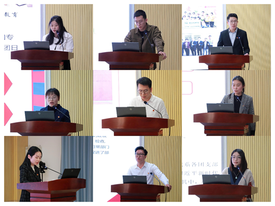 本次二级院(系)团组织述职评议考核分为自评、校团委评和现场述职三个阶段展开。大会现场,各二级院(系)团组织书记汇报履职工作情况,总结经验,归纳不足。述职完毕后,党委系统各职能部门负责人、各院(系)党总支副书记进行了现场打分。