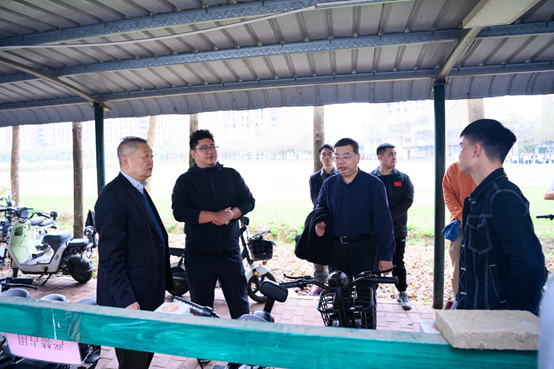 检查组一行实地查看电动自行车充电桩建设及使用情况,