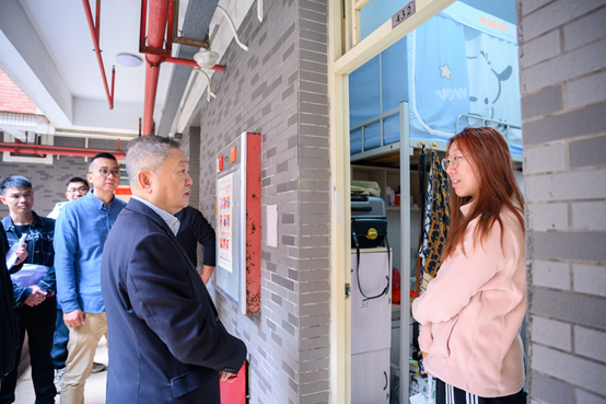 检查组一行深入宿舍现场查看宿舍内用电、用水安全状况,