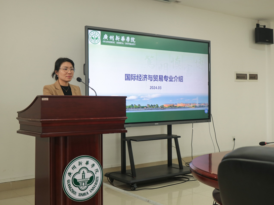 周慧敏介绍了经济与贸易学院各专业发展概况、优秀的师资队伍,并重点介绍了学院在坚持“以赛促学,以赛促教”的特色教学方法下,专业师生积极参赛所取得的丰硕成果。