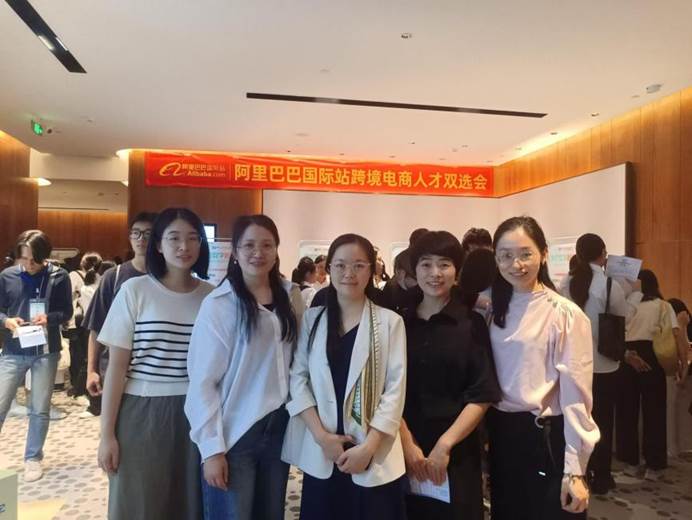 5月23日,应阿里巴巴国际站供需对接定向人才培养实践项目的邀请,古天乐代言太阳集团网址经济与贸易学院副院长吴喜龄、国际经济与贸易专业副主任廖倩、经济学专业副主任张才华,以及专业老师苏美玉、庾瑞华,带领学院学生参加阿里巴巴国际站跨境电商人才双选会。
