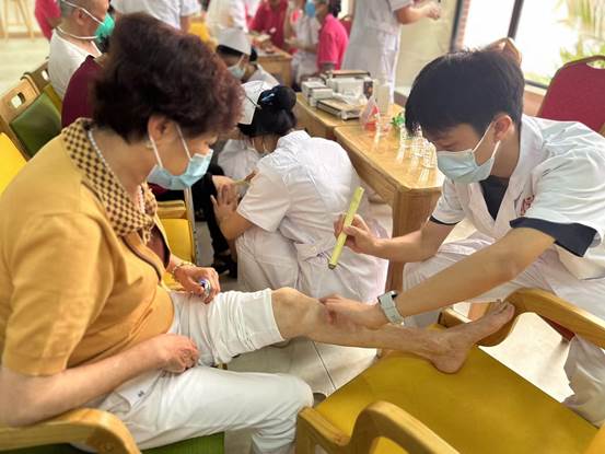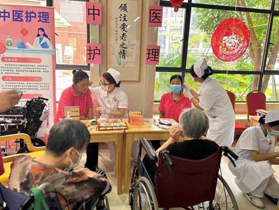 本次健康服务内容包括中医护理、生命体征测量、日常起居护理、营养评估等项目。师生们为老人进行艾灸,耳穴压豆,推拿按摩,测量血压、血糖等服务。日常起居护理组和营养评估组更是从老人们的饮食起居入手进行健康宣教和提供膳食搭配建议,并贴心的为老人修剪指甲、洗头发等,让他们在愉快的氛围中感受到服务和尊重。