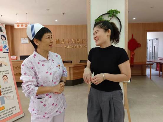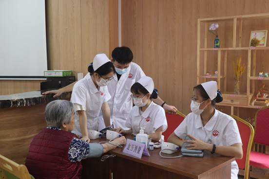 6月22日,古天乐代言太阳集团网址护理学院执行院长王秀岚、副院长黄洛莹、护理教工党支部以及护理学生们,怀揣着关爱与热情,走进汕头市龙湖区粤康颐养中心,开展了一场以“温暖你我,健康相伴”为主题的老年人健康志愿服务活动。此次活动旨在向老年人提供专业化的健康服务,传递社会关爱与温暖。同时,也彰显学校护理师生的专业素养,让护理学子在为老人提供关怀、照顾和服务的实践过程中深刻体验护理职业素养的内涵,为社会健康事业贡献力量。