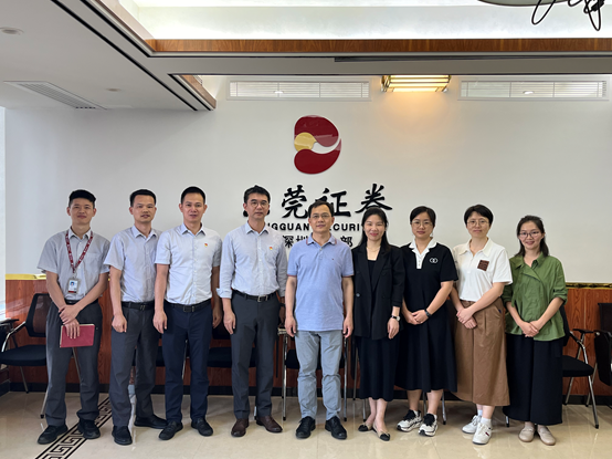 6月17日,经济与贸易学院副院长周开国带队赴东莞证券深圳营业部进行基地考察,洽谈学生就业合作事宜。金融工程专业副主任蔡婕萍、专任教师吴淑卓,互联网金融专业副主任王艳娜,以及投资学专业专任教师杨倩一同前往。本次走访企业旨在进一步深化校企合作,探讨促进学生就业的有效途径。