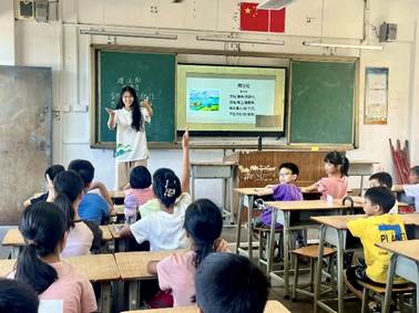 突击队根据开平金鸡镇独特的文化背景与教育资源,精心设计了六大核心课程:《小小朗诵家》引领学生感受朗诵的魅力,用声音传递情感与力量;《DIY创意小工匠》激发学生的创造力与想象力,让废旧物品在巧手中焕发新生;《家乡的记忆画卷》深入挖掘开平建筑与侨乡文化的历史底蕴,让学生们在体验中了解并传承家乡文化;《运动新星》则通过趣味横生的运动项目,增强学生体质,培养团队合作精神;《话剧魔法学堂》让学生扮演不同角色,提升表演能力与沟通能力;《笔墨千秋》则引领学生学习书法艺术,感受中华传统文化的博大精深。
