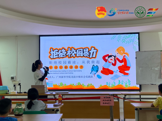 突击队前往沙富村、左滩社会实践站和苏溪居民委员会,给当地中小学生带来一场以“拒绝校园霸凌”为主题的宣讲课堂。课堂上,队员用生动的案例、亲切的语言和有趣的互动,深入浅出地讲解校园霸凌的类型、危害及法律后果,并详细地向学生们介绍《中华人民共和国未成年人保护法》《中华人民共和国治安管理处罚法》及《中华人民共和国刑法》中的相关条款。同学们积极参与课堂活动,踊跃发言,他们纯真的眼神中透露出对法律知识的渴望。