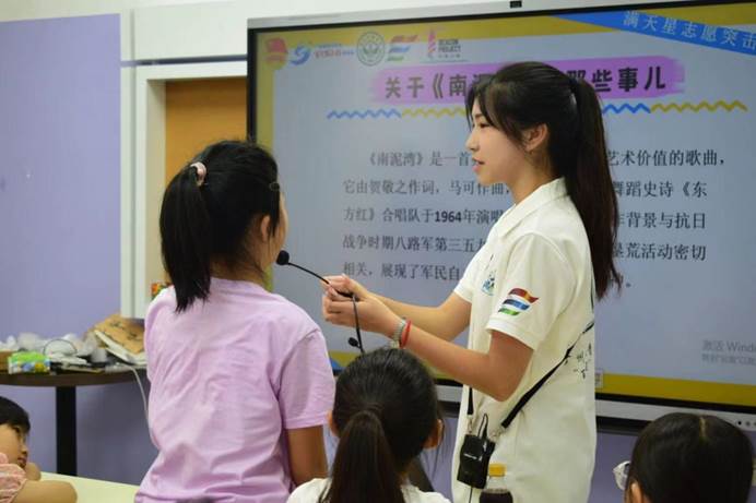 满天星志愿突击队队员在麻涌镇青年人才驿站与儿童进行课堂互动