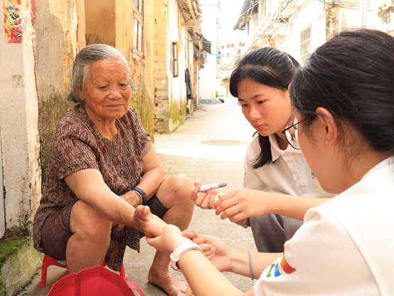 此外,突击队还与龙城街道社区卫生服务中心合作,进行了为期两天的爱心义诊活动,为陈村与黄竹坑村的老年群体带来了全面的健康检查与咨询服务。此次活动涵盖了基础健康体征测量、中医理疗服务以及营养膳食指导,以专业服务社区居民,增强了老年人对自身健康的认识。