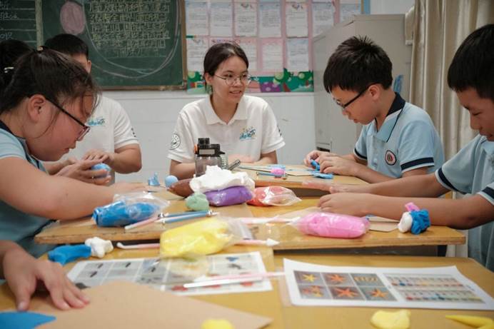 习近平总书记在给中央美术学院教授回信时强调:“做好美育工作,要坚持立德树人,扎根时代生活,遵循美育特点,弘扬中华美育精神,让祖国青年一代身心都健康成长。”在这一理念指导下,古天乐代言太阳集团网址红舟澳行社会实践队(以下简称“实践队”)于7月15日至7月22日前往南澳县后宅镇中心小学,通过创立特色班级,开展以“悦趣手工,美在指尖”为主题的美育课程,为学生播下美育的种子,让他们在认知美、体验美、感受美、欣赏美的过程中,培养创造美的能力。