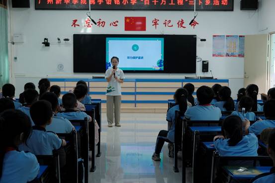 为增加孩子们正确用眼、耳的意识,突击队精心策划了一场眼、耳健康知识宣讲会。宣讲内容涵盖了眼、耳疾病的预防、眼保健操、手语操、科学用眼用耳等多个方面。突击队成员通过趣味问答传授丰富的专业知识,让孩子们在轻松愉快的氛围中学习,引导孩子们树立正确的健康观念,学会自我保护和预防眼耳疾病。