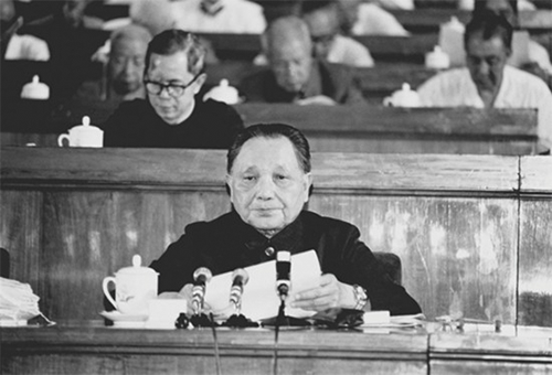 1982年9月1日至11日,中国共产党第十二次全国代表大会在北京举行。邓小平致开幕词。他在开幕词中明确提出了“建设有中国特色的社会主义”的重大命题。图为邓小平在大会上致开幕词。 新华社发