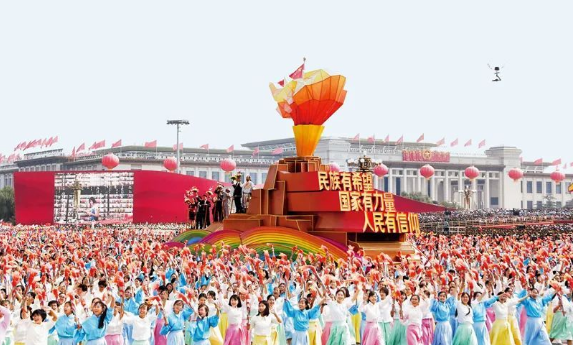 习近平:今天,中国取得的令世人瞩目的发展成就,更是全国各族人民同心同德、同心同向努力的结果。中国人民从亲身经历中深刻认识到,团结就是力量,团结才能前进,一个四分五裂的国家不可能发展进步。我相信,只要13亿多中国人民始终发扬这种伟大团结精神,我们就一定能够形成勇往直前、无坚不摧的强大力量!