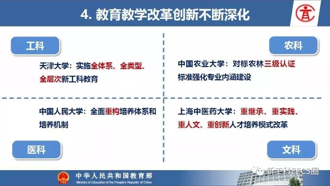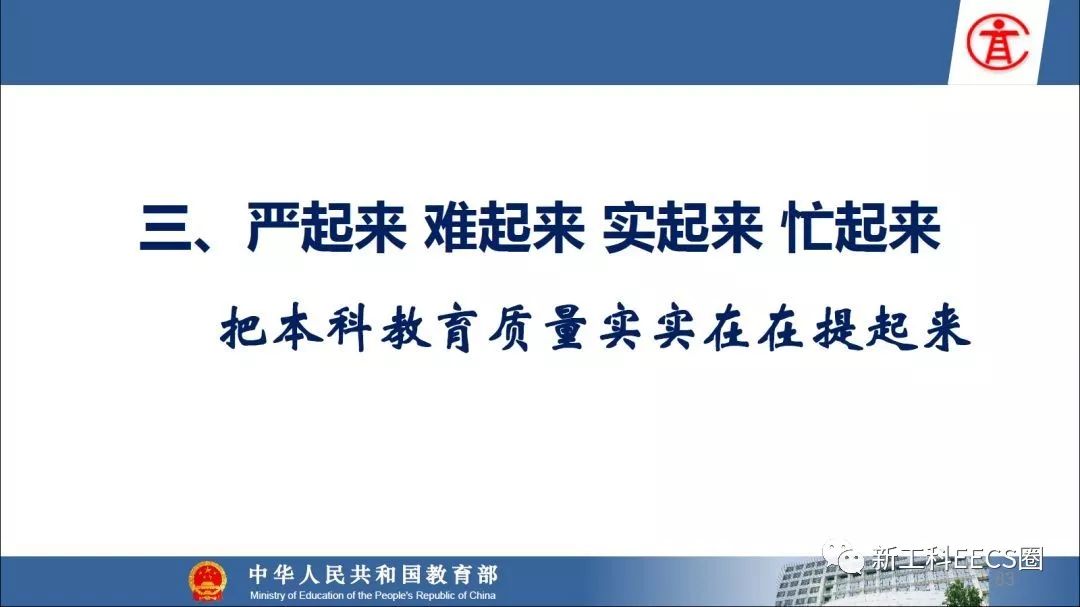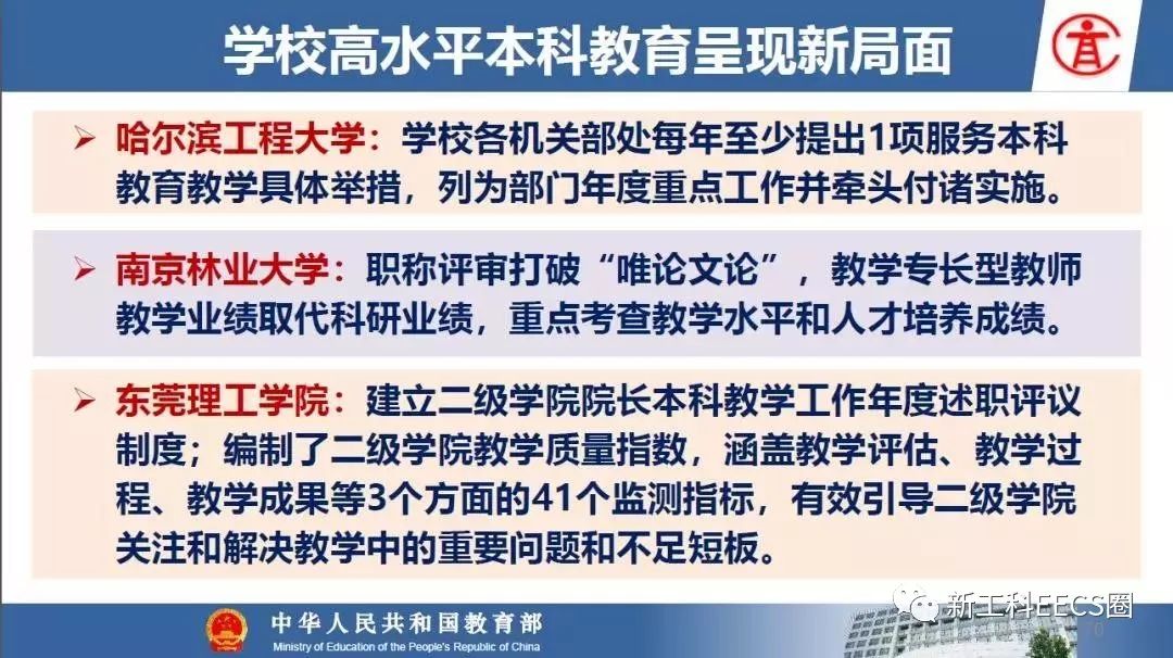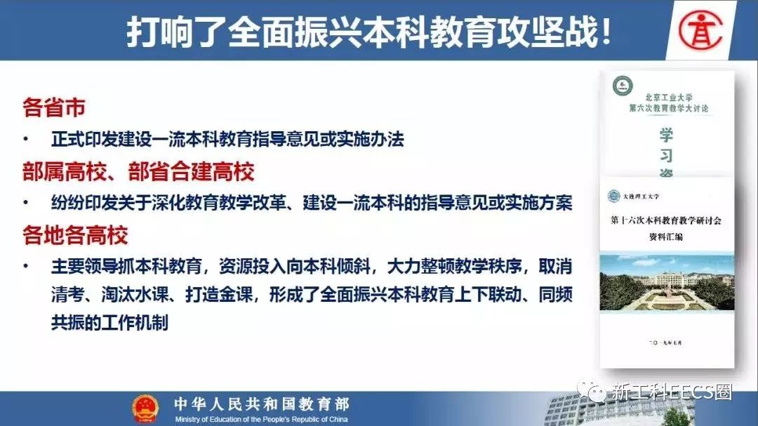 报告指出:要精准把握高等教育发展大势,超前识变、积极应变、主动求变;提到本科教育呈现新局面,“以本为本,四个回归”理念深入人心,“三个不合格、四个首先”得到有效落实;最后强调要通过一系列行动,把本科教育质量实实在在提起来,学校要狠抓教学改革,让金专、金课、金师随处可见!