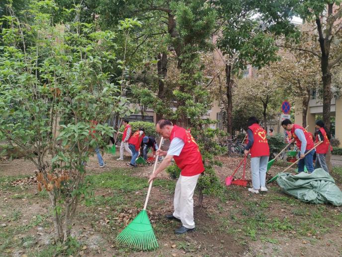 蓝永金副校长、副书记带领党员同志们清扫花圃落叶