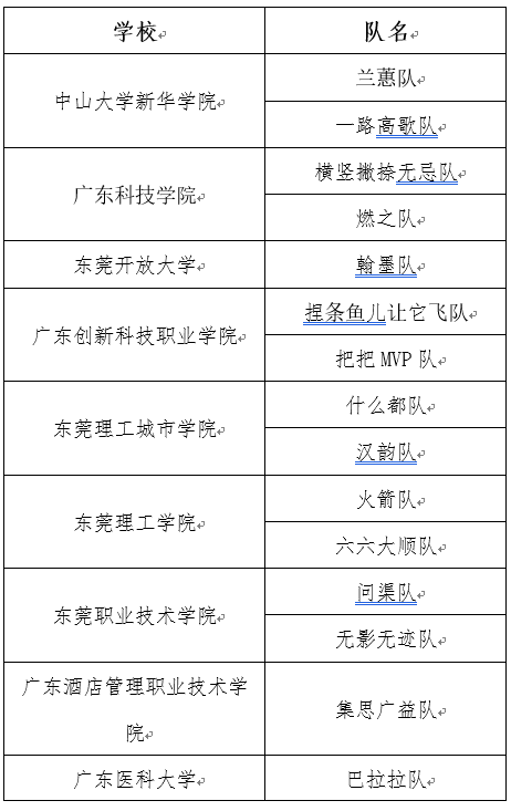 本届大赛于2018年9月正式启动,经过初赛的激烈争夺,15支优胜队伍杀出重围,进入最终总决赛。届时,来自东莞市教育局领导及中山大学新华学院、东莞开放大学、东莞理工学院城市学院的老师们进行评审。