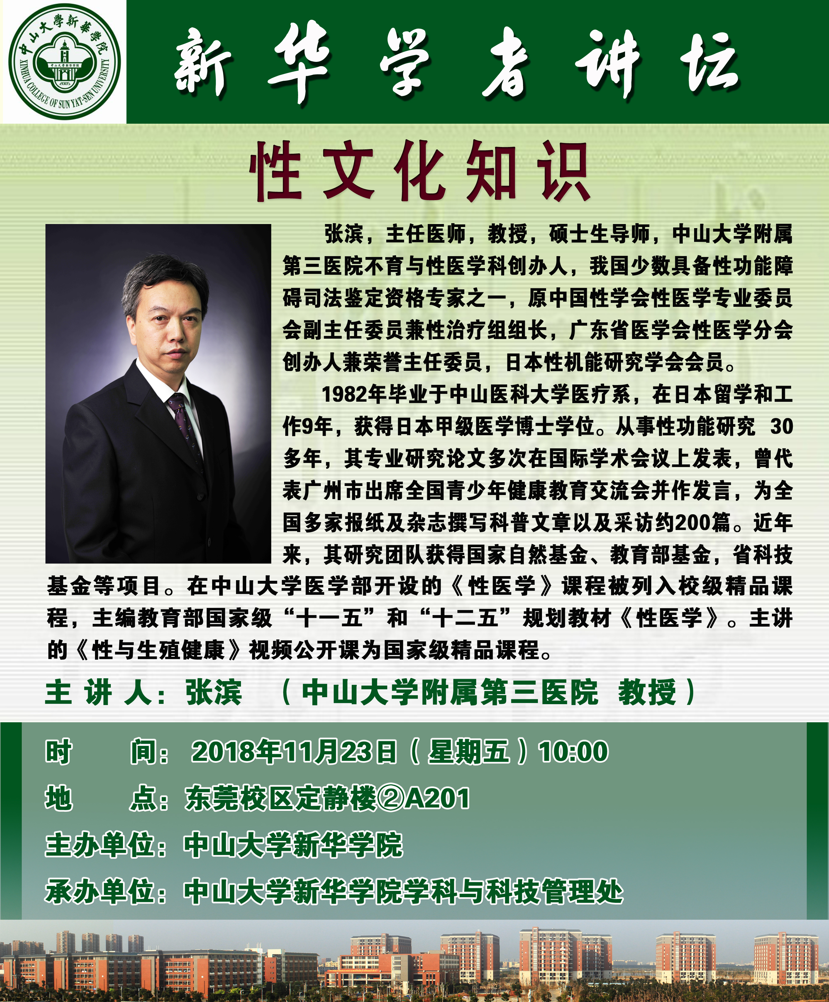 张滨,主任医师,教授,硕士生导师,中山大学附属第三医院不育与性医学科创办人,我国少数具备性功能障碍司法鉴定资格专家之一,原中国性学会性医学专业委员会副主任委员兼性治疗组组长,广东省医学会性医学分会创办人兼荣誉主任委员,日本性机能研究学会会员。