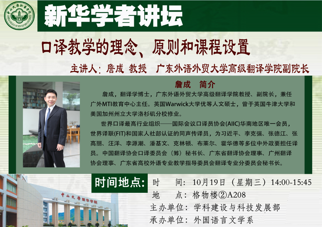 讲座主题:口译教学的理念、原则和课程设置
