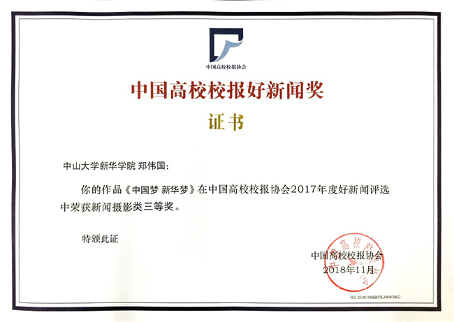 中山大学新华学院报《中国梦 新华梦》获新闻摄影类三等奖