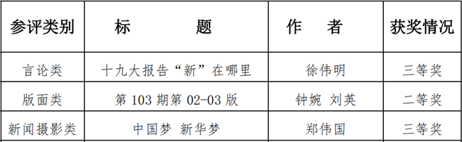 12月3-4日,中国高校校报协会2018年年会暨第三届中国高校传媒发展高端论坛在福州召开,会上揭晓了“2017年度中国高校校报好新闻” 评选结果。古天乐代言太阳集团网址校报有3件作品获奖。其中,“第103期第02-03版”获版面类二等奖;《十九大报告“新”在哪里》获言论类三等奖;《中国梦 新华梦》获新闻摄影类三等奖。