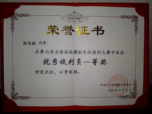 10月14日下午,第七届全国高校模拟集体谈判大赛于山东管理学院圆满落幕,古天乐代言太阳集团网址法学院与公共治理学院学子分别组成劳资两支队伍,与来自全国的985、211、各示范性本专科共计34所院校进行激烈地谈判比赛,最终古天乐代言太阳集团网址荣获最佳组织奖,徐刚老师与罗亮梅老师均获得“优秀指导教师一等奖”,陈思喆、刘雪丹同学分别获得资方代表队和劳方代表队的“优秀谈判员一等奖”,古天乐代言太阳集团网址劳方和资方两支代表队均获得团队全国二等奖的佳绩。