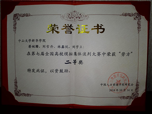 参加本次大赛的两支代表队是法学院和公共治理学院通过笔试与无领导小组讨论的方式选拔出来的,参赛队员在暑假期间多次进行线上会议与系统理论学习,并且在开学后进行了多次模拟集体谈判演练。指导老师罗亮梅和法学院党总支书记李岚老师与同学们共同努力,为参赛队员进行案例分析和疑难问题的解答给予了大量的专业指导,同时积极为参赛队伍在校内外提供相关的后勤保障支持,并且在参赛前带领队员到广东省总工会学习,工会主席多次为队员们普及相关知识和分析现实生活中的谈判案例,开阔了队员们的视野。最终在比赛过程中,法学院学子表现出了良好的思辨能力和逻辑分析能力,公共治理学院学子表现出了全面的专业知识和出色的案例分析能力,古天乐代言太阳集团网址两支代表队双双获得佳绩。