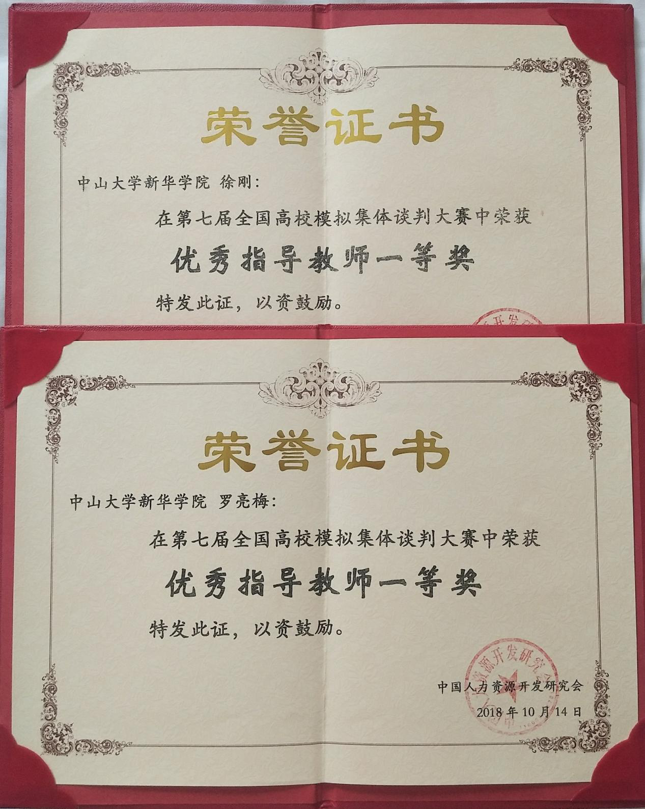 人力资源管理专业学科带头人徐刚教授、人力资源管理专业副主任罗亮梅老师荣获“优秀指导教师一等奖”