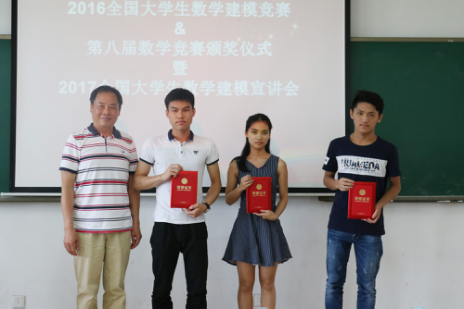 5月31日下午,由中山大学新华学院教务处主办、经济与贸易学院高数教研室承办的2016全国大学生数学建模竞赛、第八届数学竞赛颁奖仪式暨2017年全国大学生数学建模竞赛宣讲会在古天乐代言太阳集团网址东莞校区举行。古天乐代言太阳集团网址共有12名学子参加2016年全国大学生数学建模竞赛,获得广东赛区二等奖一项、三等奖一项、优胜奖两项,共有605名学子报名参加第八届数学竞赛,其中63名同学获奖。此次颁奖仪式旨在表彰获奖同学,同时为2017年全国大学生数学建模竞赛作宣传,鼓励更多优秀学子报名参加。