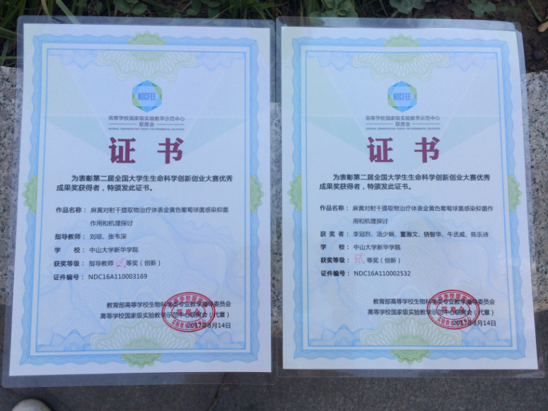 8月13日,在第二届全国大学生生命科学创新创业大赛总决赛中,由刘琼、汪雪兰、张韦深老师指导,李冠烈、汤小娴、铙智华、牛丞威、陈乐诗、董瀚文等同学参与的课题“麻黄与射干提取物对大鼠体表金黄色葡萄球菌感染的抗菌作用和机制研究”获得创新组二等奖。