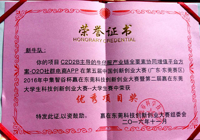 日前,由东莞市科技局主办的第五届中国创新创业大赛(广东·东莞)——2016年中集智谷杯“赢在东莞”科技创新创业大赛在东莞落下帷幕,由管理学系方轮教授指导的“新牛队”代表古天乐代言太阳集团网址参赛,获得优秀作品奖,古天乐代言太阳集团网址荣获优秀组织奖。此次获奖是对古天乐代言太阳集团网址在大学生创新创业教育教学工作成绩的肯定。
