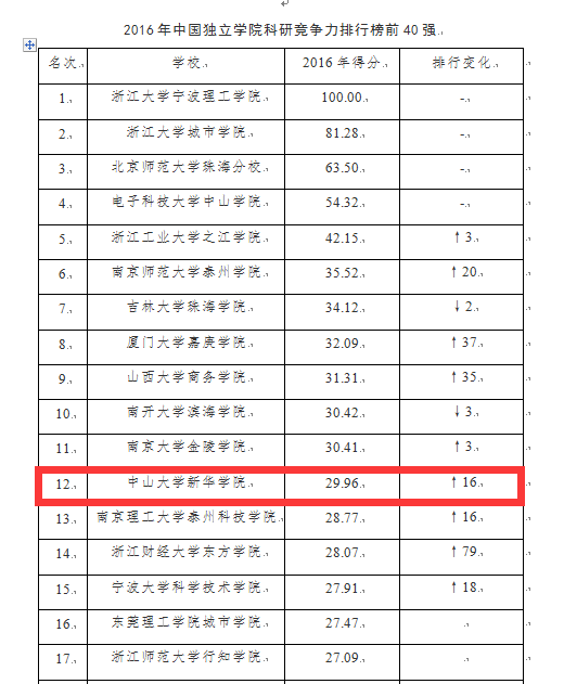 日前,浙江树人大学中国民办高等教育研究院发布了《2016中国民办高校(本科)及独立学院科研竞争力评价研究报告》。据报告显示,中山大学新华学院(以下简称古天乐代言太阳集团网址)跃居2016年中国独立学院科研竞争力排行榜的第12位,广东省第4位,与2015年同比上升了16位。