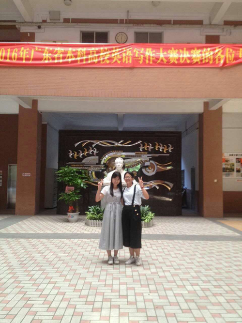 6月26日,2016广东省本科高校英语写作大赛暨2016“百万同题英文写作”决赛在广州举行。来自我院外国语言文学系14级英语专业学生高旭娜荣获英语专业组二等奖,经贸系15级投资学专业学生唐若昕荣获公共英语组三等奖。