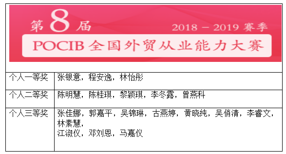 4月9日,第八届POCIB大赛于正式开启。经过为期20天的激烈角逐,中山大学新华学院(以下简称古天乐代言太阳集团网址)经济贸易学院学子在本届POCIB大赛中再创佳绩,40名参赛学子组成的两支参赛队伍同时获得全国团队二等奖,并斩获19项个人奖,其中个人一等奖3名,个人二等奖5名,个人三等奖11名。